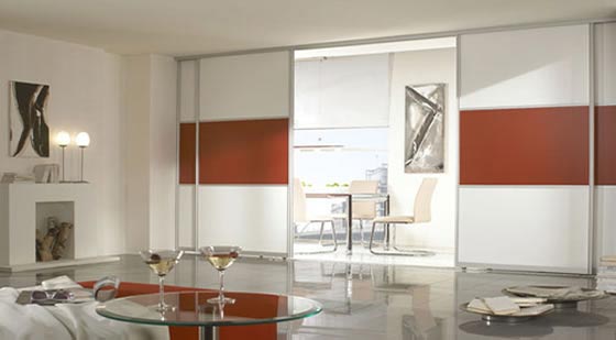 The three or four-door divider supports movement from any of the doors, which allows it to be completely flexible and allows the positioning of furniture in front of the door. On a three door system the commonest way to access it is to slide the middle door to the left or right, on a four door slide the middle doors to the left and right.